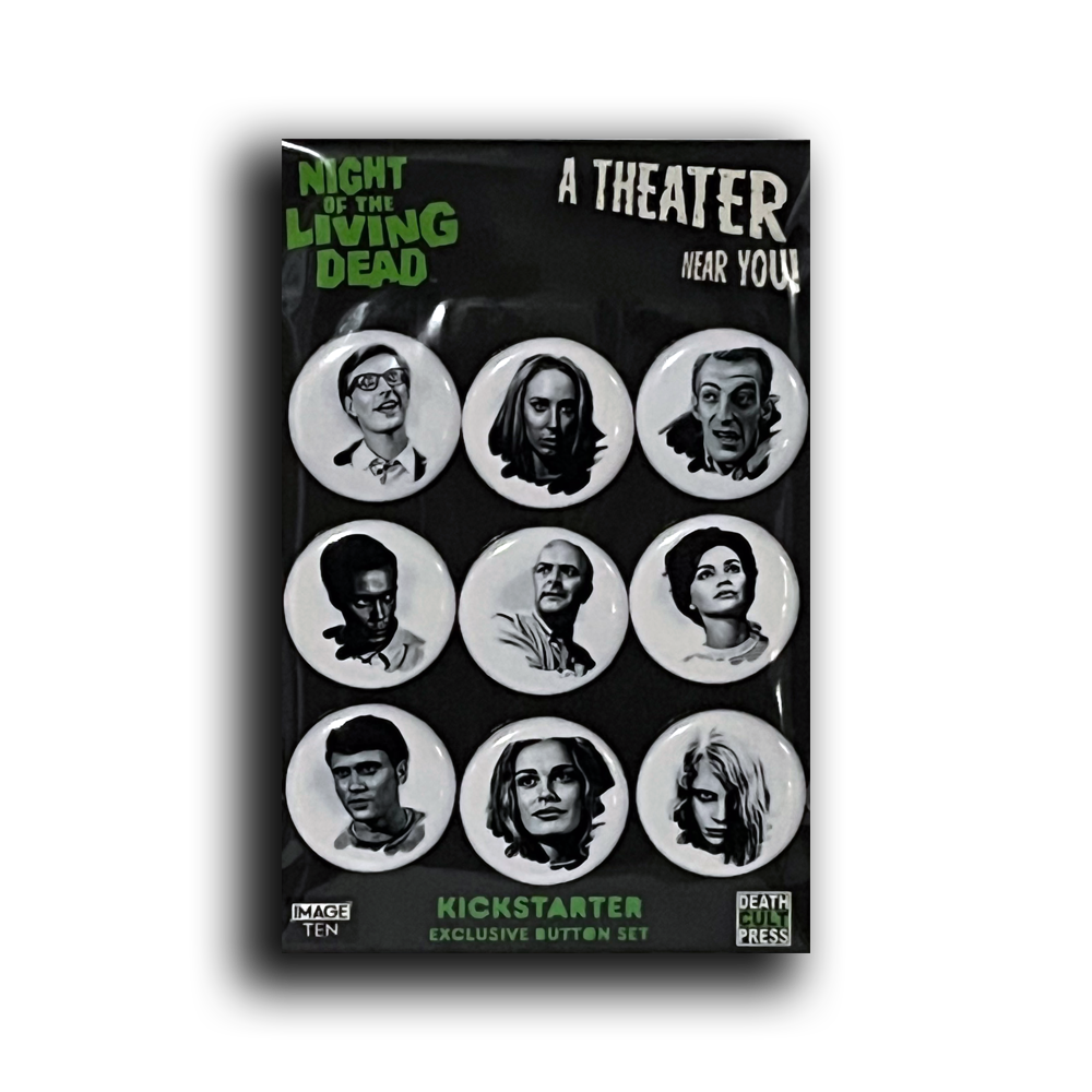 Officially licensed 9pc Night of the Living Dead character 1.25" buttons.